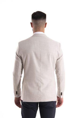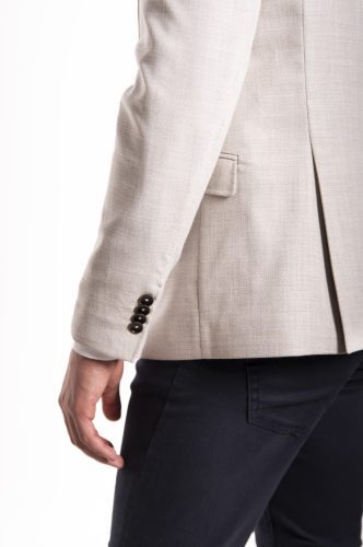 Americana desestructurada slim fit realizada en un tejido microdibujo falsoliso beige arena.