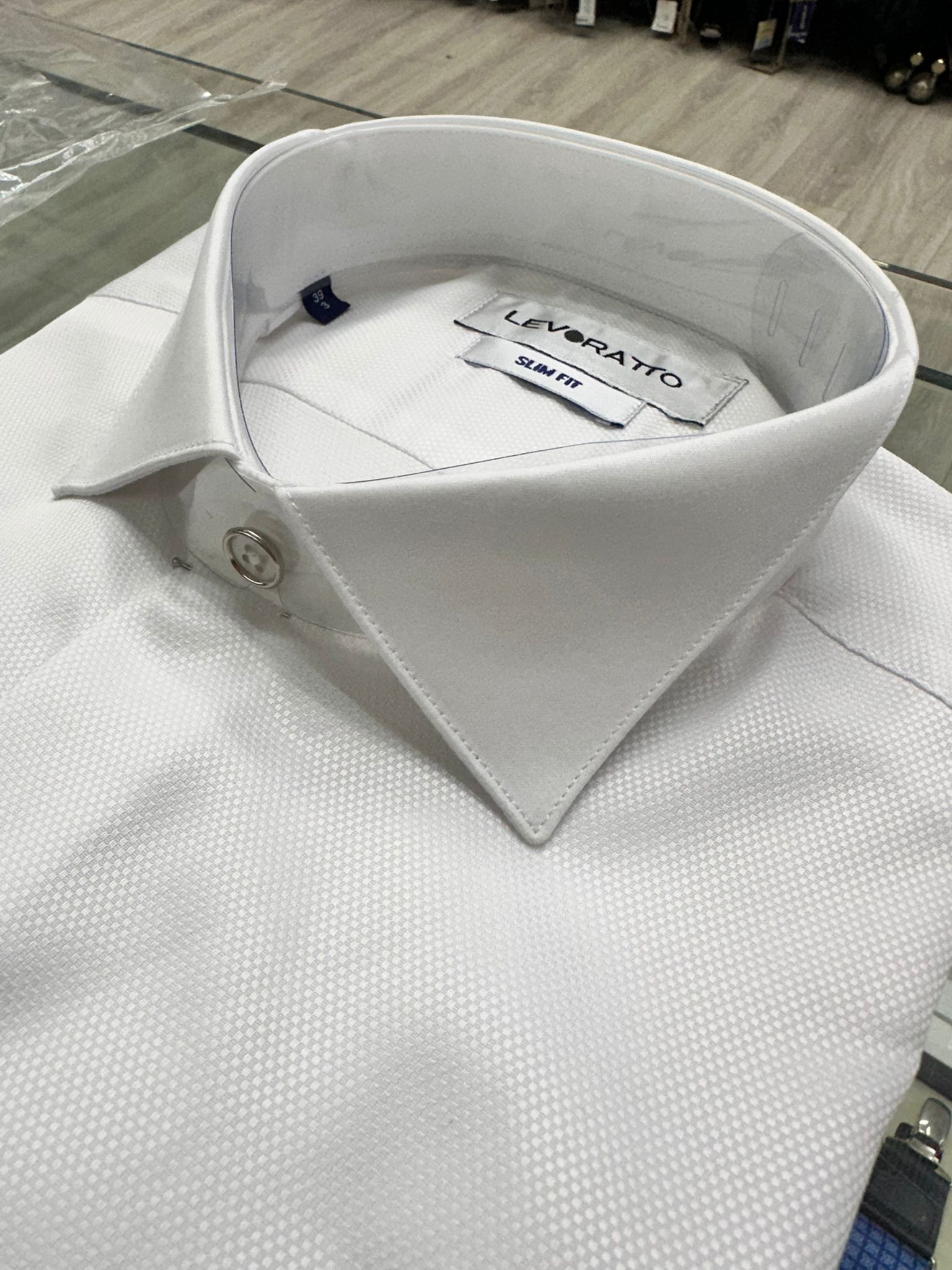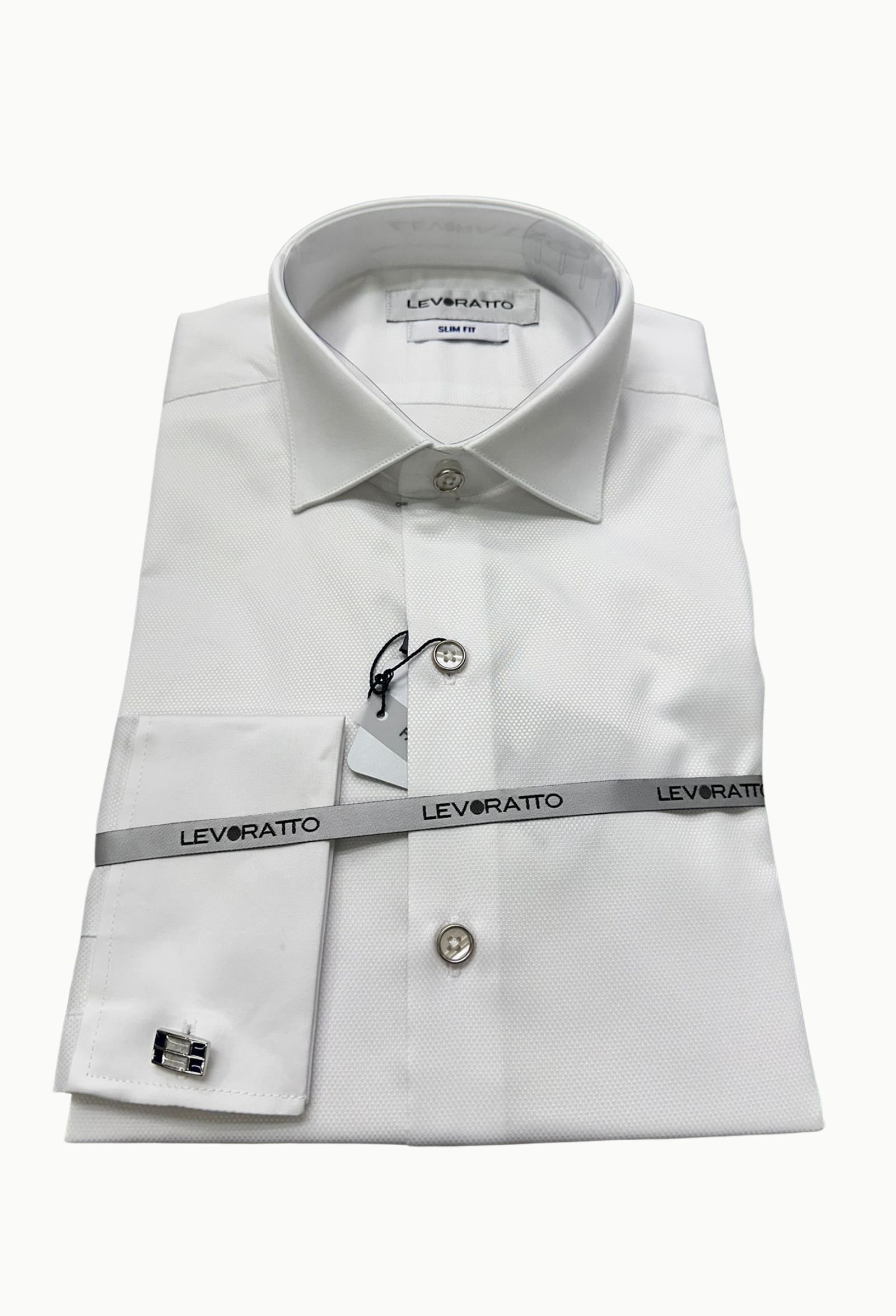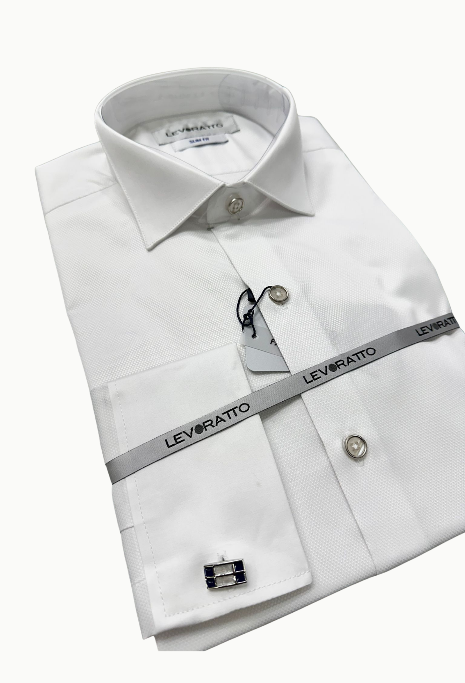 La camisa de ceremonia blanca de Levoratto está diseñada para hombres que buscan elegancia, presencia y un ajuste impecable en los momentos más importantes.