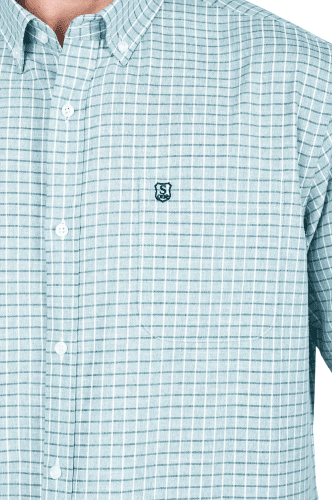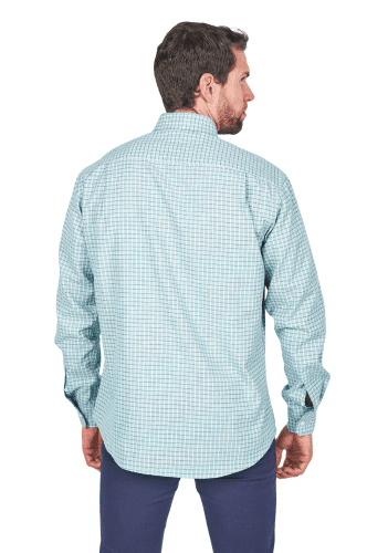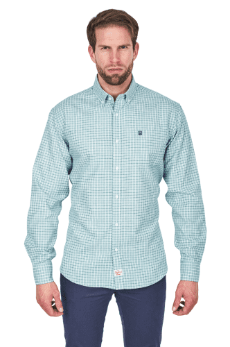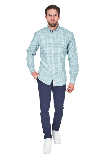 La camisa de viyela verde de cuadro fino combina elegancia y comodidad en una prenda versátil, perfecta para el día a día o momentos más formales.