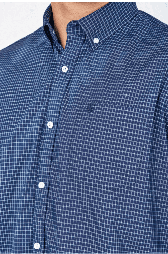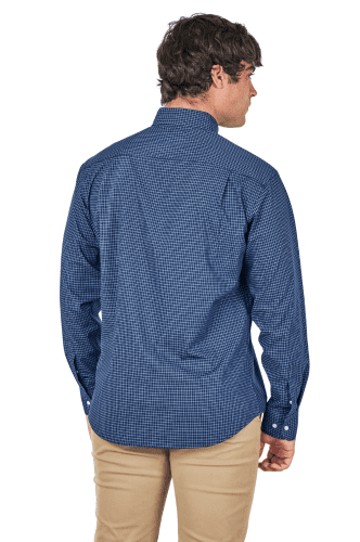 Su patrón de microcuadro azul marino aporta un toque de distinción y versatilidad, perfecta tanto para looks informales con vaqueros como para un estilo más arreglado con chinos o blazer.