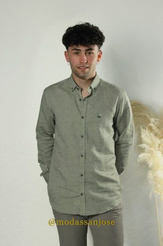 diseño liso en lino verde, camisa super fresquita