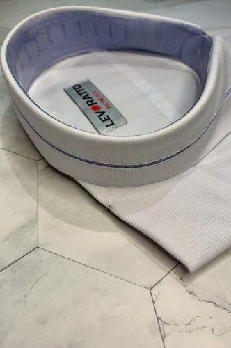 Ojal puño opcional para gemelo o botón. Botones blancos con aro azul.