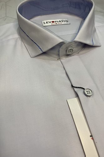 Camisa de ceremonia con vivo en cuello estampado pata de gallo en azul.