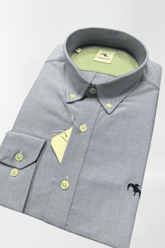 Camisa manga larga con botón en el cuello y detalle logo pecho Dos Galgos.