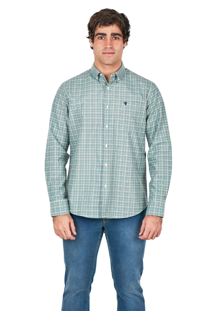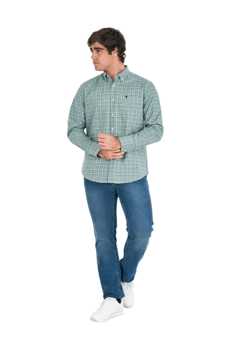 Corte Regular Esta camisa de hombre es una prenda versátil y cómoda, perfecta para looks casuales, de fin de semana o de oficina informal. Confeccionada en el clásico tejido Oxford, conocido por su textura distintiva y su durabilidad, presenta un patrón de cuadros que aportan calidez y facilidad de combinación.