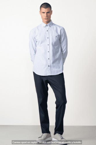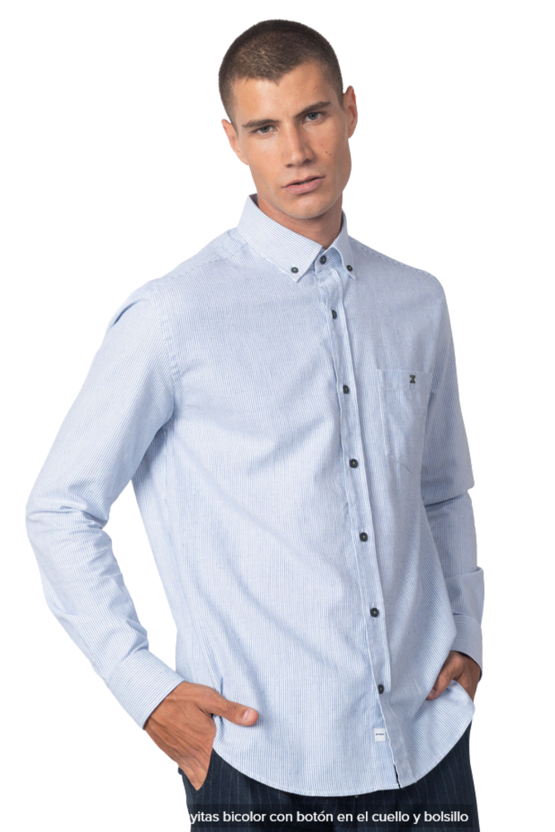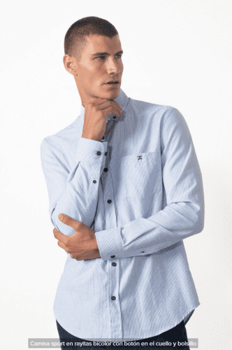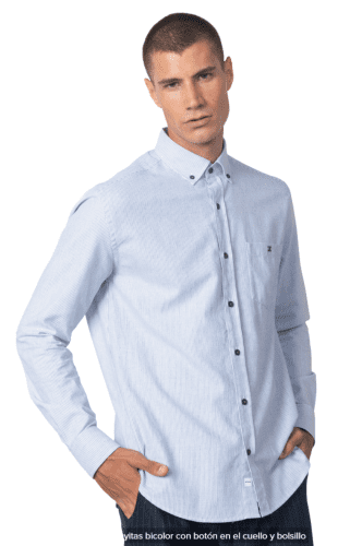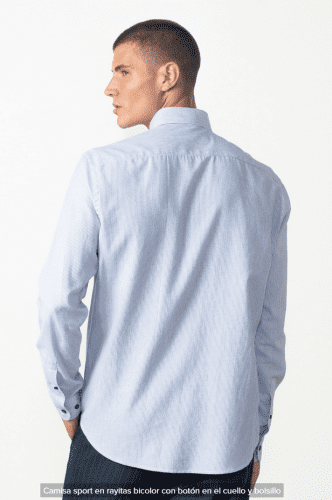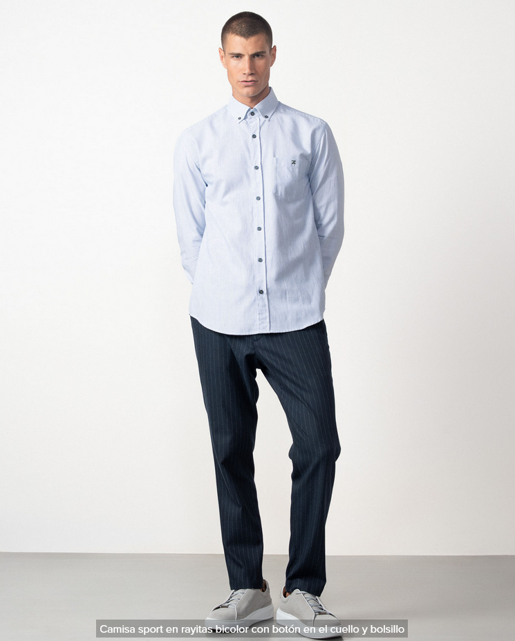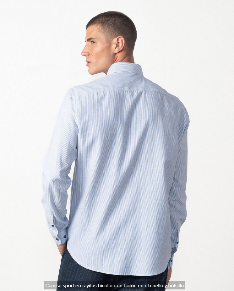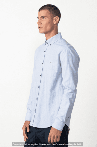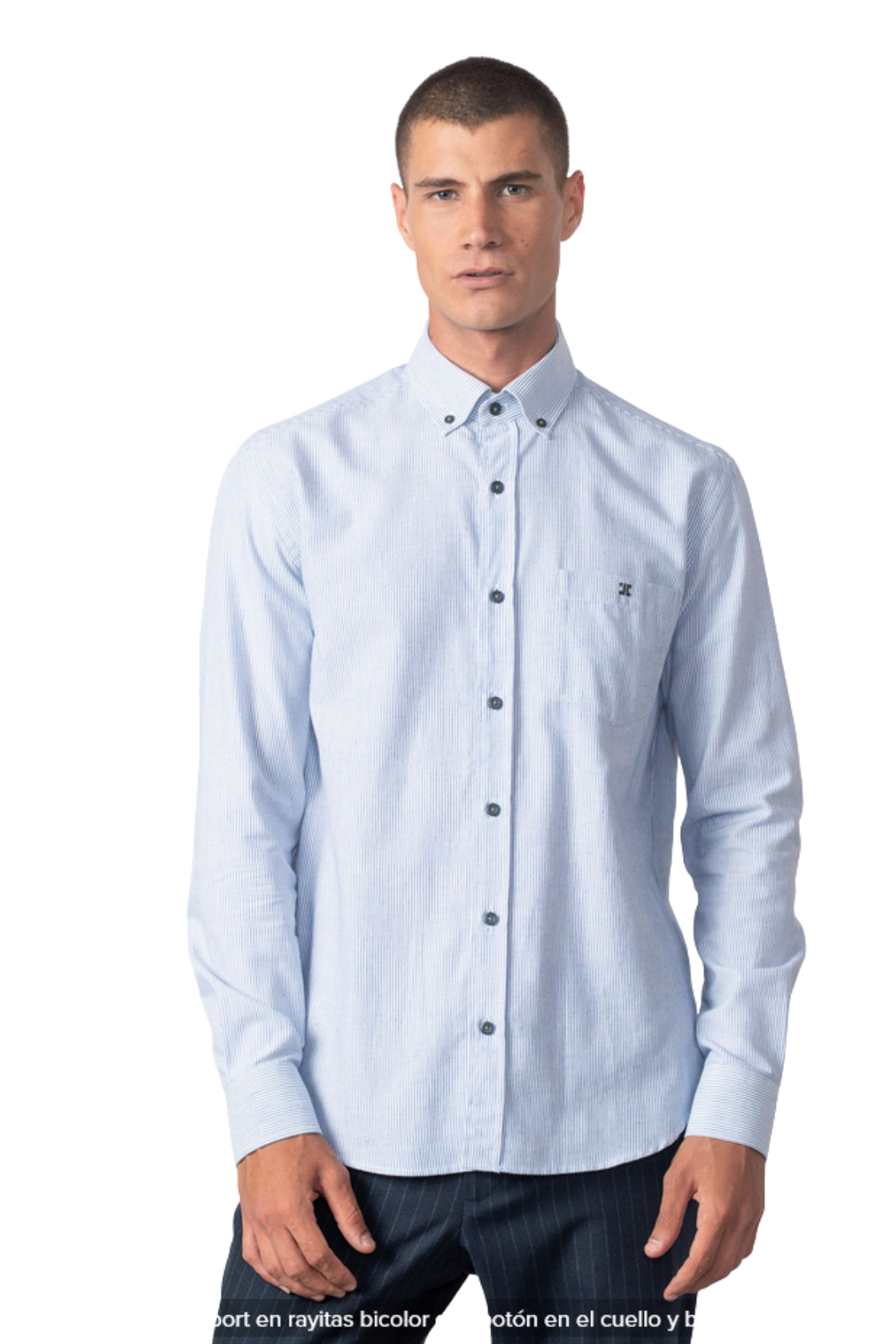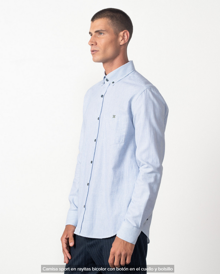 Camisa sport relaxed fit realizada en una rayita bicolor de algodón `afranelada´.