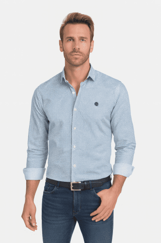 🧥 Camisa Slim Fit Azul Microdibujo – Estilo Urbano y Elegante