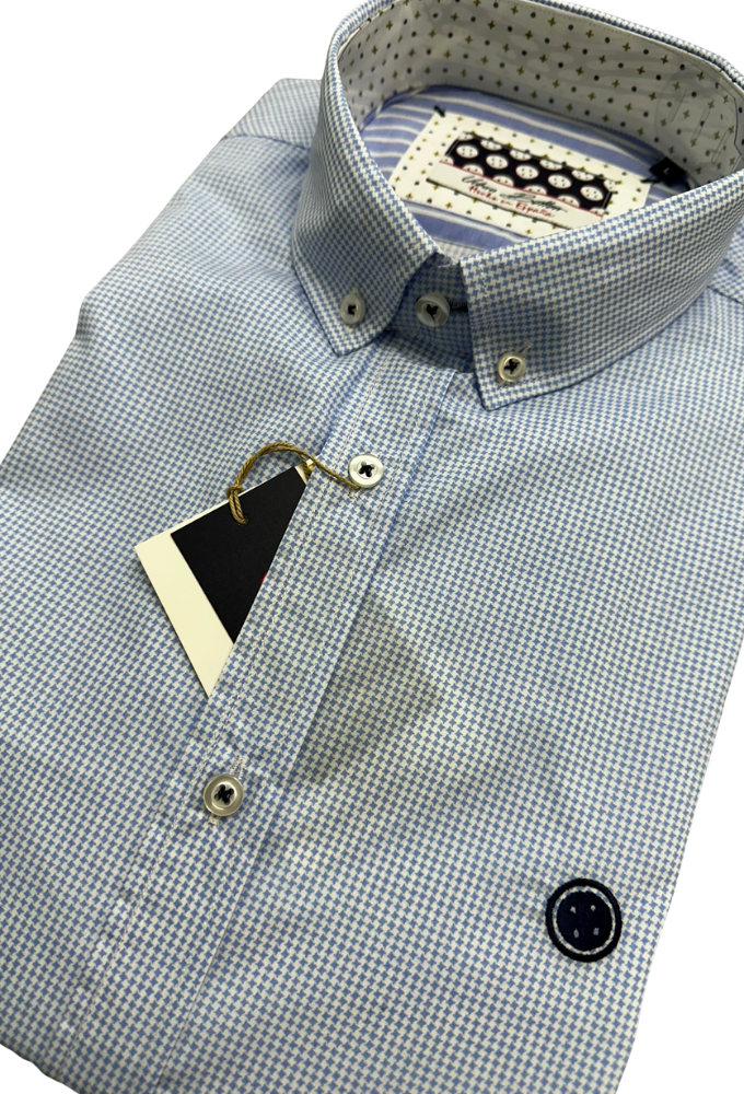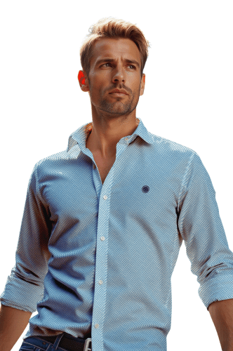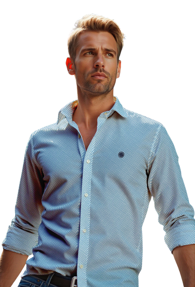 Eleva tu estilo con esta camisa azul de microdibujo, perfecta para quienes buscan un equilibrio entre elegancia y comodidad. Su diseño slim fit realza la silueta masculina, mientras que el tejido de algodón elástico garantiza una sensación suave y transpirable durante todo el día. Ideal tanto para looks de oficina como para ocasiones informales con un toque sofisticado.
