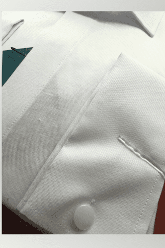 Doble puño, ojal para gemelo. Botones blancos.