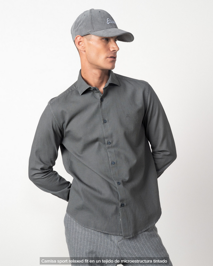 Camisa sport relaxed fit realizada en un tejido de microestructura tintado.