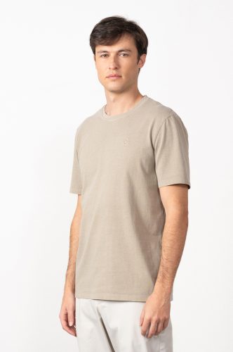 Realizada en un algodón 100%, cuyo proceso de tinte proporciona un acabado sutilmente delavado, consiguiendo un look casual y ligeramente ‘empolvado’.