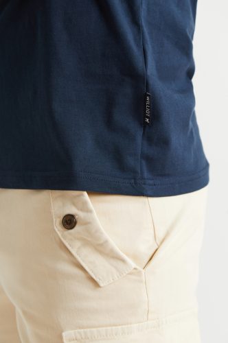 - Cuello redondo. Manga corta.