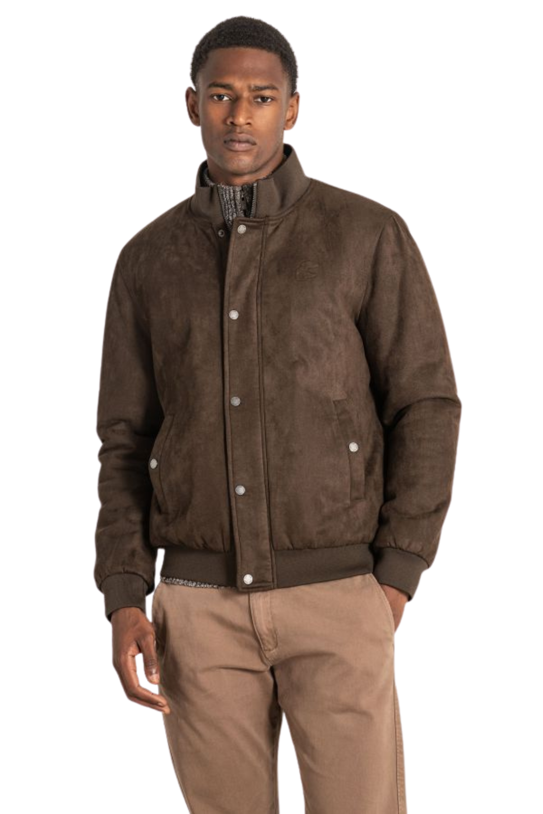 Chaqueta estilo bomber en antelina – Marrón oscuro