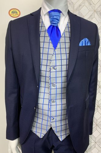 *Posibilidad de elegir corbatón o pajarita, todo a mismo tono de cuadro de chaleco (azul klein) .