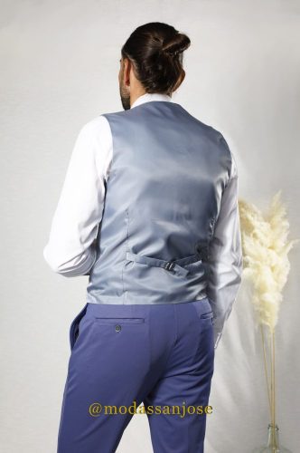 Chaleco cruzado, con solapa y 4 botones forrados y falso bolsillo.