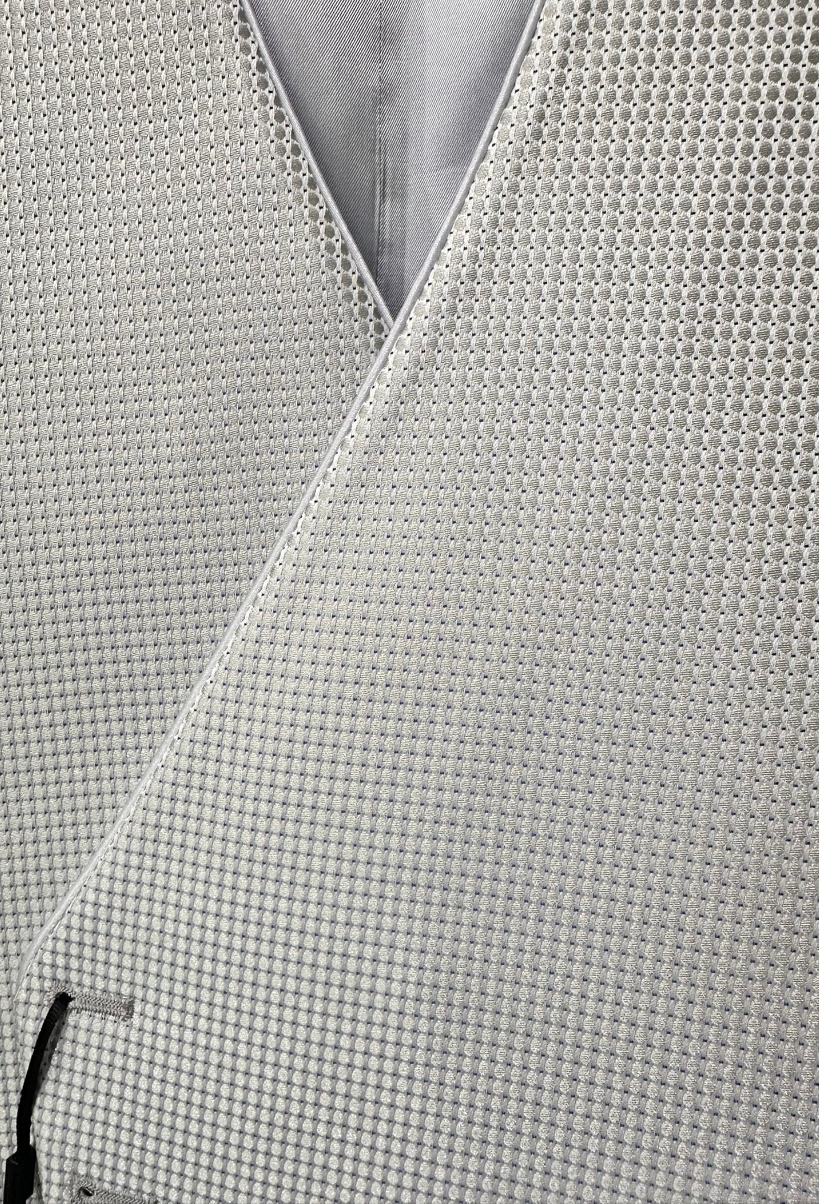 Este chaleco de ceremonia ETIEM en color plata con delicado picado azul es una opción sofisticada y actual para novios e invitados que buscan un look distinguido y luminoso. Su diseño combina a la perfección con trajes azules, grises o tonos claros, aportando contraste y elegancia sin excesos.
