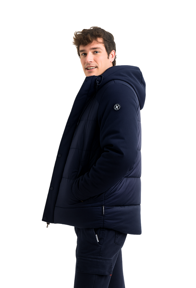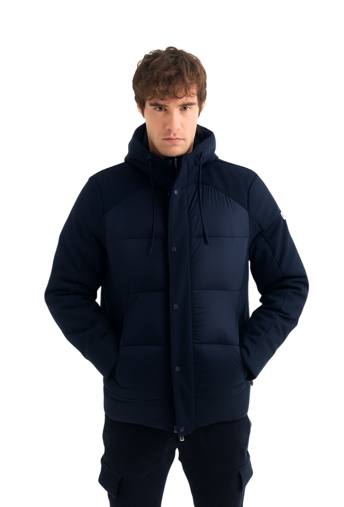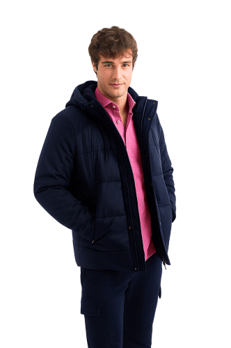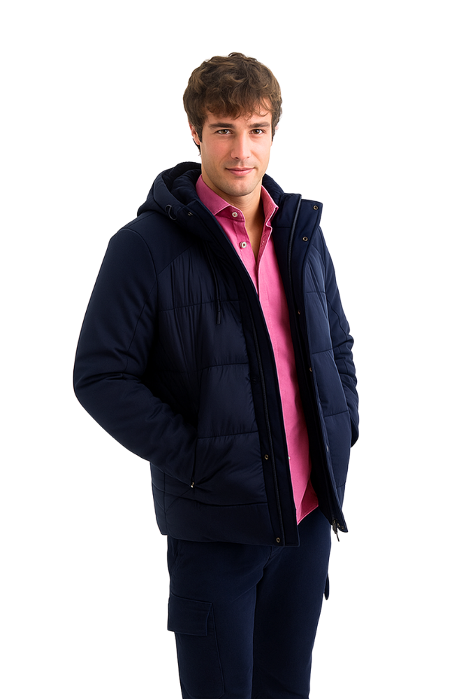 Chaqueta técnica acolchada azul marino con interior de pelito suave – estilo urbano y confort térmico