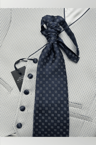 Diseño estampado jacquard de fondo azul marino y dibujos de cuadros punteados .