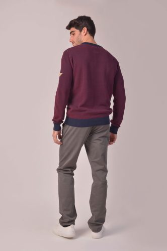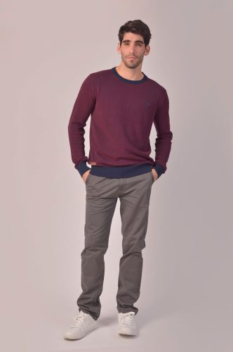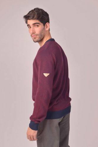 Siente el espíritu Privata con este jersey de punto de manga larga , con elegante textura granate y marino.