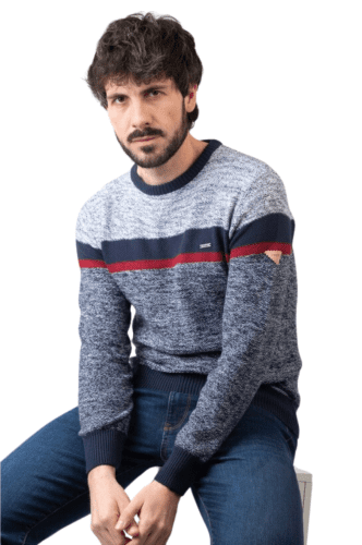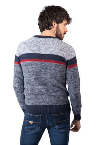 Siente el espíritu Privata con jersey cuello redondo, tejido confortable y agradable. Diseño combinando los colores marino, blanco y granate.