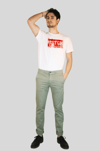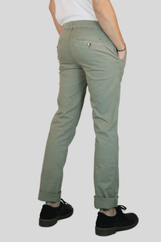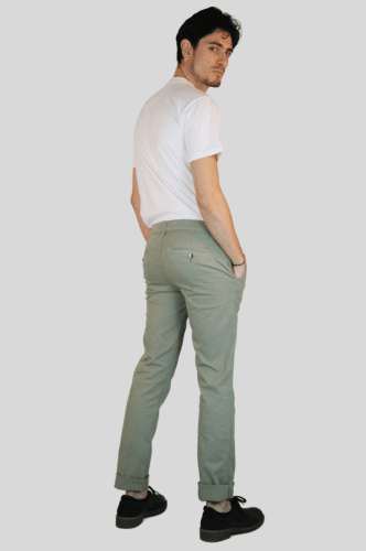 Pantalón corte chino, bolsillo lateral delanteros , bolsillo relojero y trasero recto.