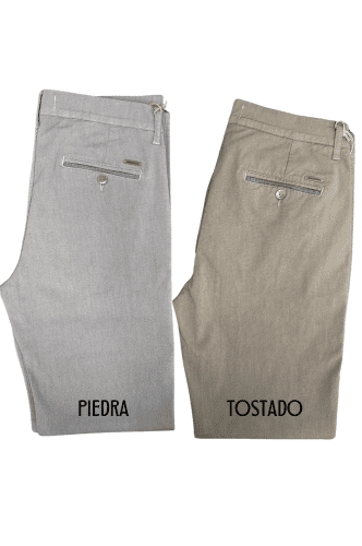 Pantalón de algodón Montizon Altea piedra, corte chino bolsillo lateral delanteros y bolsillo recto en parte trasera con vivo liso y botón.