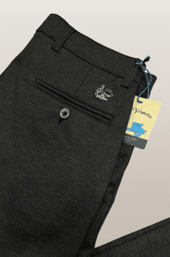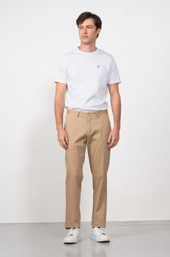 Pantalón de elastano, corte chino, bolsillo lateral delanteros , bolsillo relojero y trasero recto.