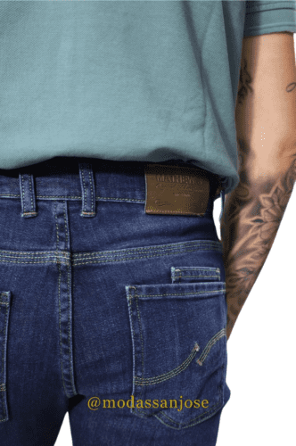 Denim Elástico, detalle de doble bolsillo trasero