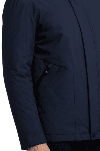 El interior acolchado térmico garantiza una temperatura óptima incluso en los días más fríos, mientras que los cierres termosellados y los bolsillos con cremallera proporcionan máxima seguridad y durabilidad. Su tono azul marino ligeramente satinado resalta por su versatilidad, combinando fácilmente con jeans o chinos para un look casual-business.
