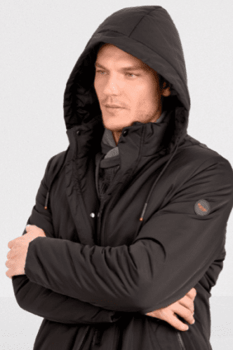 Parka larga lisa hombre marca Rever con doble cierre cremallera y solapa con botón.