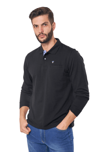 El polo negro de manga larga es una prenda esencial para el hombre moderno que busca equilibrio entre elegancia y comodidad. Confeccionado en tejido de algodón pique de tacto suave, garantiza un ajuste perfecto y libertad de movimiento en cualquier ocasión.