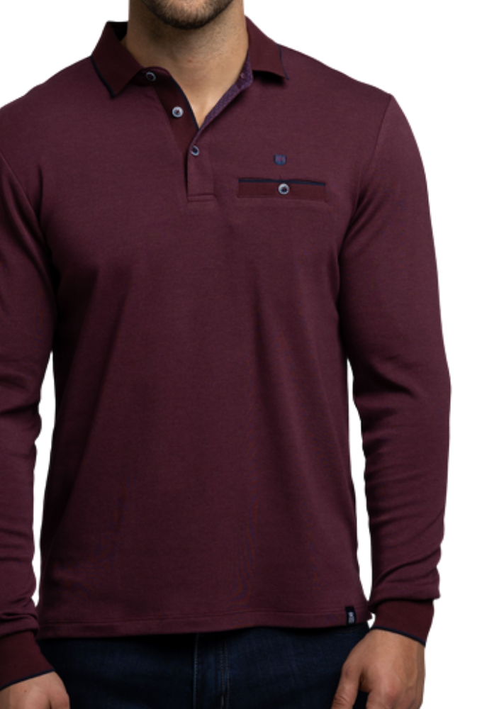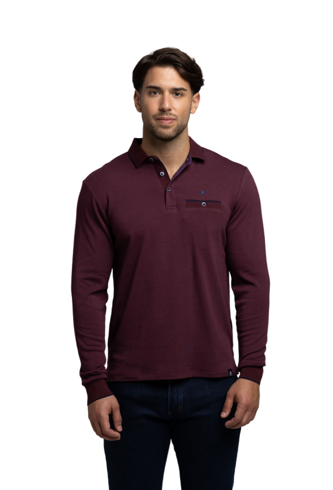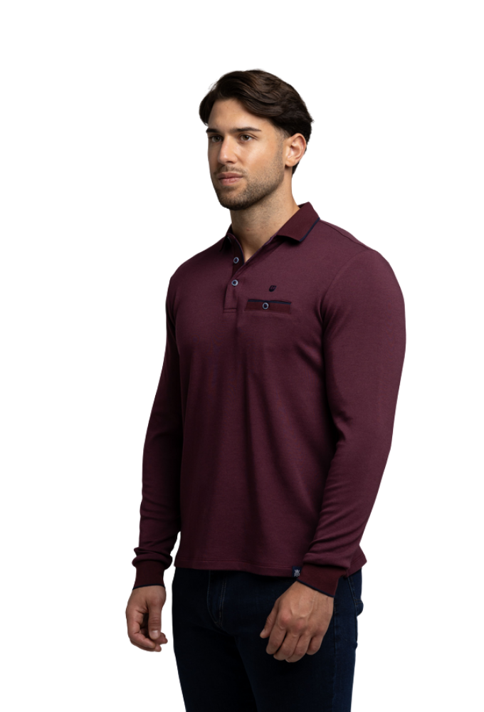 El polo berenjena de manga larga Rever Mille combina la elegancia atemporal con el confort de los materiales técnicos actuales. Su tejido de punto suave y elástico ofrece una textura agradable y una caída natural, perfecta para mantener una imagen cuidada durante todo el día.
