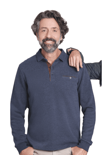 El tacto y el confort de un jersey de punto calentito en polo camisero.