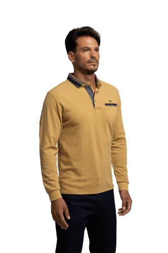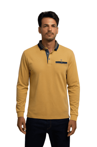 El polo mostaza de manga larga Rever Mille combina la elegancia atemporal con el confort de los materiales técnicos actuales. Su tejido de punto suave y elástico ofrece una textura agradable y una caída natural, perfecta para mantener una imagen cuidada durante todo el día.