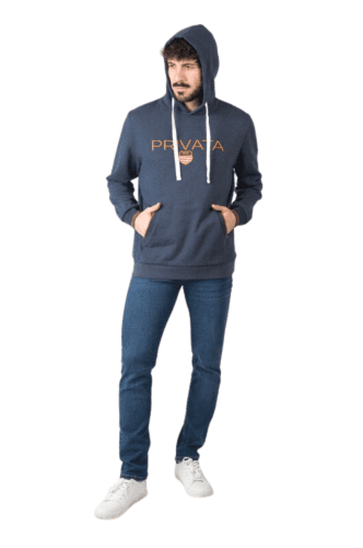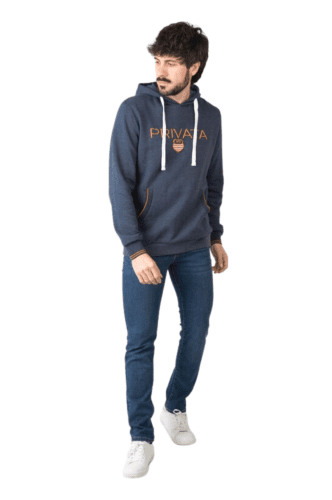 Sudadera con capucha y bolsillos con tejido jaspeado suave, combinación gráfica bordada en el pecho