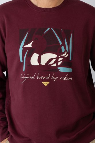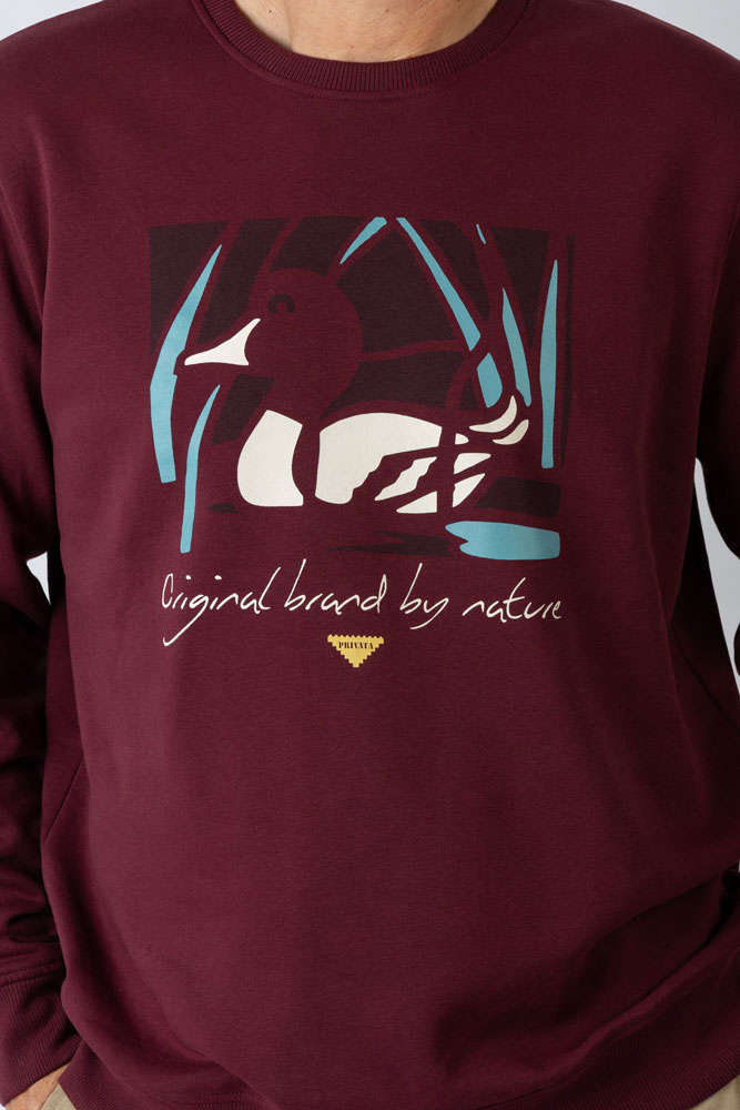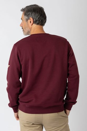 Sudadera cuello redondo con tejido jaspeado suave, combinación gráfica bordada en el pecho