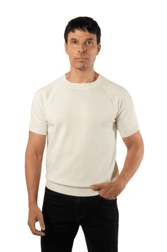 El suéter jersey tendencia de manga corta de esta temporada, ideal para combinar con americana, cazadora o incluso traje.
