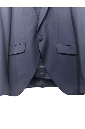 Tiene una largo de 75cm para la talla 50. Forro entero de fantasía con tres bolsillos. El pantalón es de tiro bajo con cierre de cremallera y botón, dos bolsillos traseros de ojal y sin pinza. El ancho de bajos del pantalón es de 18,5 cm para la talla 42. El corte del traje realza la figura y presenta una línea joven y actual.