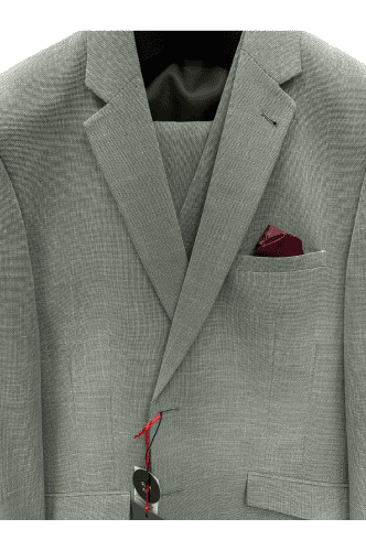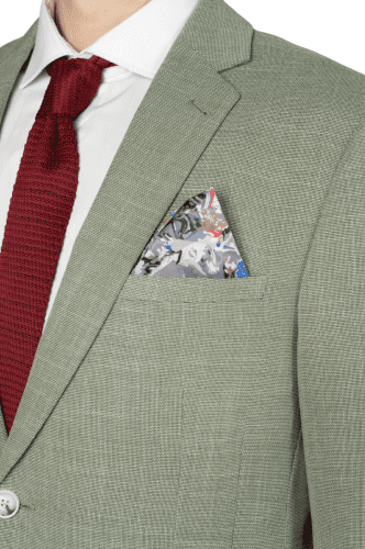 Elegante traje de tres piezas para ceremonia en color verde tejido rustico.