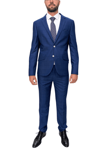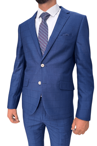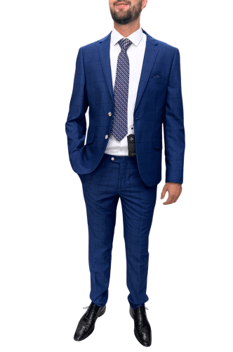 Traje informal en color azul y cuadro a tono mas oscuro para ceremonia.
