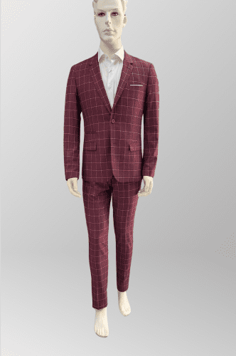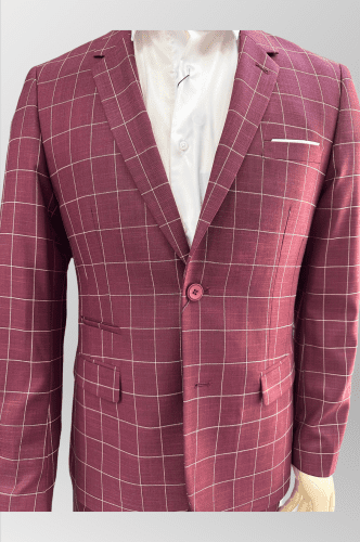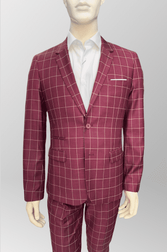 Precioso color en granate borgoña con diseño de cuadros en beige a contraste.