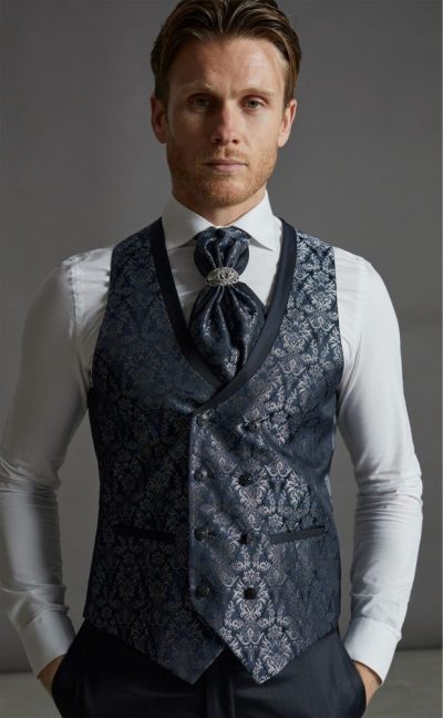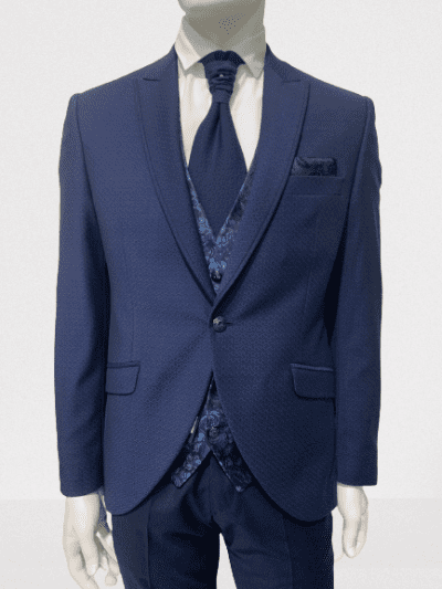 Este traje de ceremonia Giovanni Ricci se presenta como un conjunto completo, pensado para ofrecer una solución elegante y coordinada para ocasiones especiales. Incluye chaqueta, pantalón, chaleco, corbatón y pañuelo, garantizando una imagen cuidada y equilibrada sin necesidad de añadir complementos adicionales.