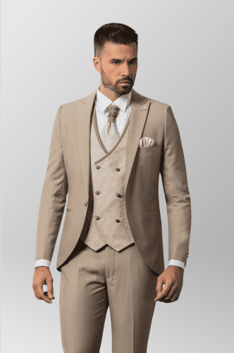 Traje de novio en un color diferente beige arena .