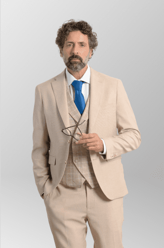 Tiene una largo de 74cm para la talla 50. Forro entero de fantasía gris con tres bolsillos. El pantalón es de tiro bajo con cierre de cremallera y botón, dos bolsillos traseros de ojal y sin pinza. Cinturilla elástica, proporcionando la mayor comodidad. Solapa ancho de 8 cm.
