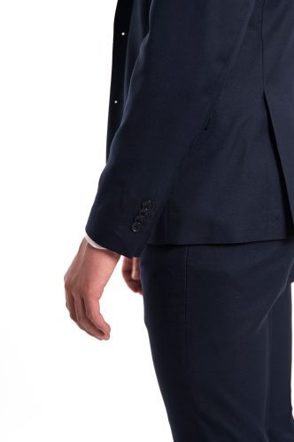 La chaqueta tiene una largo de 76cm para la talla 52. Forro entero con tres bolsillos. El pantalón es de tiro medio con cierre de cremallera y botón, un bolsillo trasero de ojal y sin pinza.