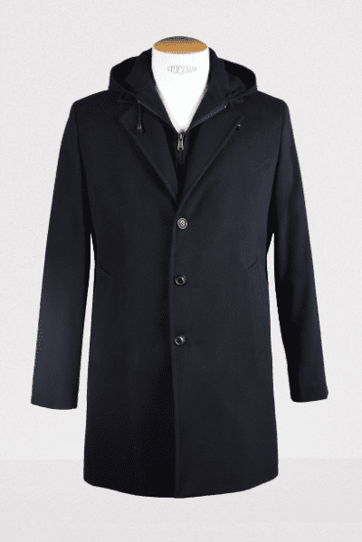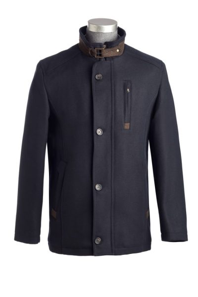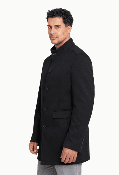 Abrigo Negro Hombre Cuello Mao Hinojo